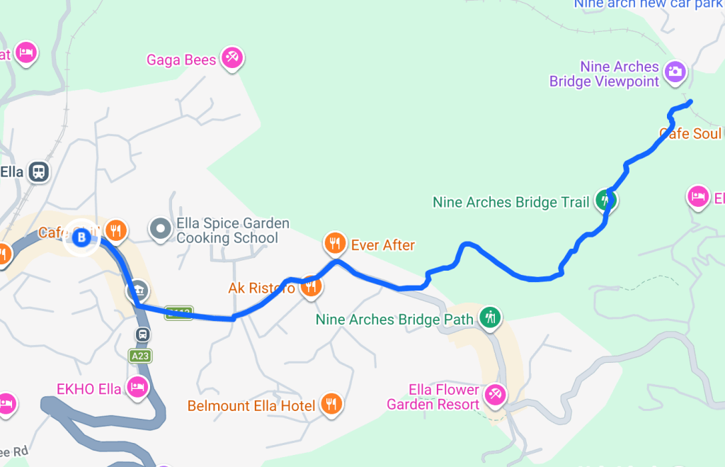 The bridge is part of the scenic hill-country railway line that runs between Kandy and Badulla, and the area is well known for the blue trains that cross the bridge through the valley. The run is straightforward to follow and can easily be extended by continuing along the railway track or climbing further into the surrounding hills.